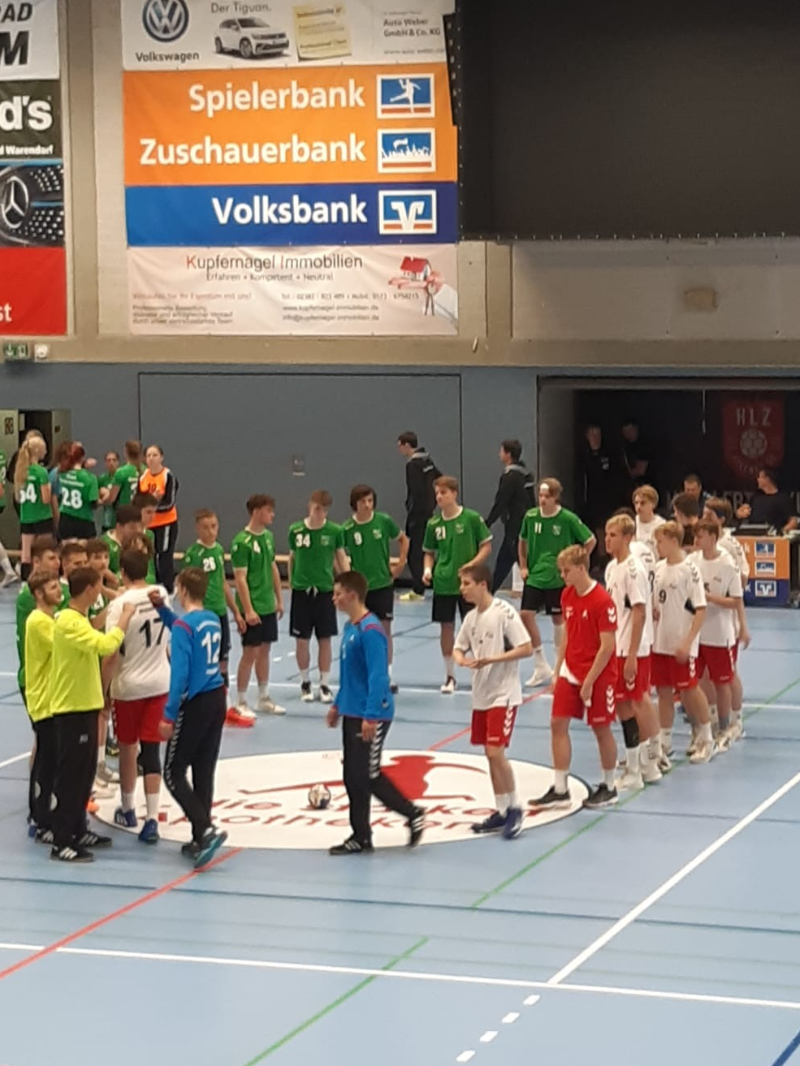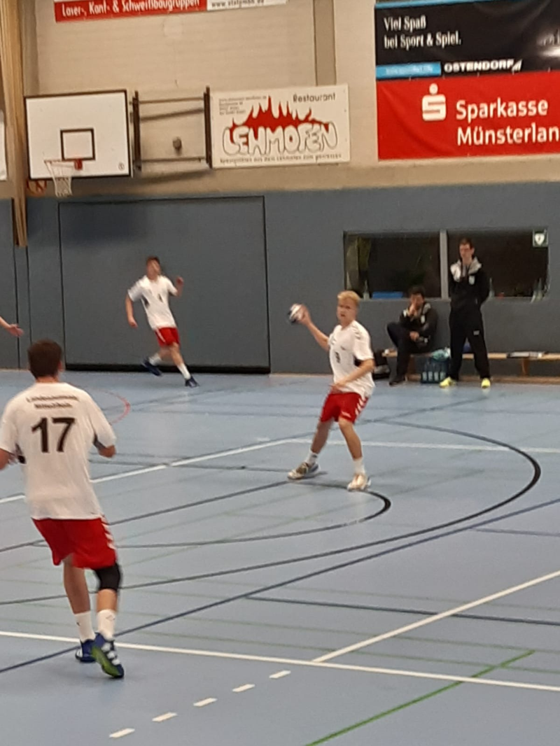 Das JSG-Team von Trainer Johannes Esser war mit argen personellen Engpässen an den Uhlenkrug gereist, so ohne Tim, Emil, Jakob und Bjarne, dafür mit Ben, Jonas und Julien aus der C2 und Max, der extra aus dem Sauerland nachgereist war. Der Anfang der Partie war beiderseits von großer Nervosität geprägt, mit vielen Fehlern – hüben wie drüben. Zum Ende des ersten Abschnitts stabilisierte sich die Bonner Defensive und im Angriff besann man sich erfolgreich auf seine Konzepte. Nach dem Seitenwechsel blieb die Abwehr hellwach und stabil. Im Angriff sorgten besonders Adam und Paul mit 12 und 10 Toren maßgeblich dafür, dass die JSG entscheidend davonziehen konnte, auch wenn die Wurfquote wegen Harzverbot verständlicherweise nicht wirklich gut war. Am Ende stand aber doch ein hochverdienter Auswärtssieg der Bonner Jungs gegen einen mehr als soliden Gegner.