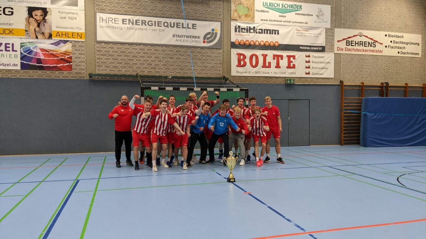 In einer von zwei 3-er-Gruppen folgten zwei souveräne Siege gegen Münster 2 und die TSG Oberursel, bevor im Halbfinale gegen die HSG Oberhessen, eine Spielgemeinschaft nordöstlich von Frankfurt, eine anspruchsvolle Aufgabe bevorstand. Nachdem auch diese Hürde mit 17:11 erfolgreich genommen wurde, kam es zum Aufeinandertreffen mit der Erstvertretung der TSG Münster. Gegen den favorisierten Oberligisten präsentierten sich die JSG`ler aufmerksam in der Deckung und zeigten insgesamt die beste Turnierleistung, sodass mit einem 16:11-Erfolg der Turniersieg errungen werden konnte.