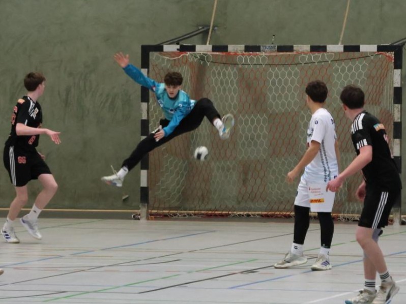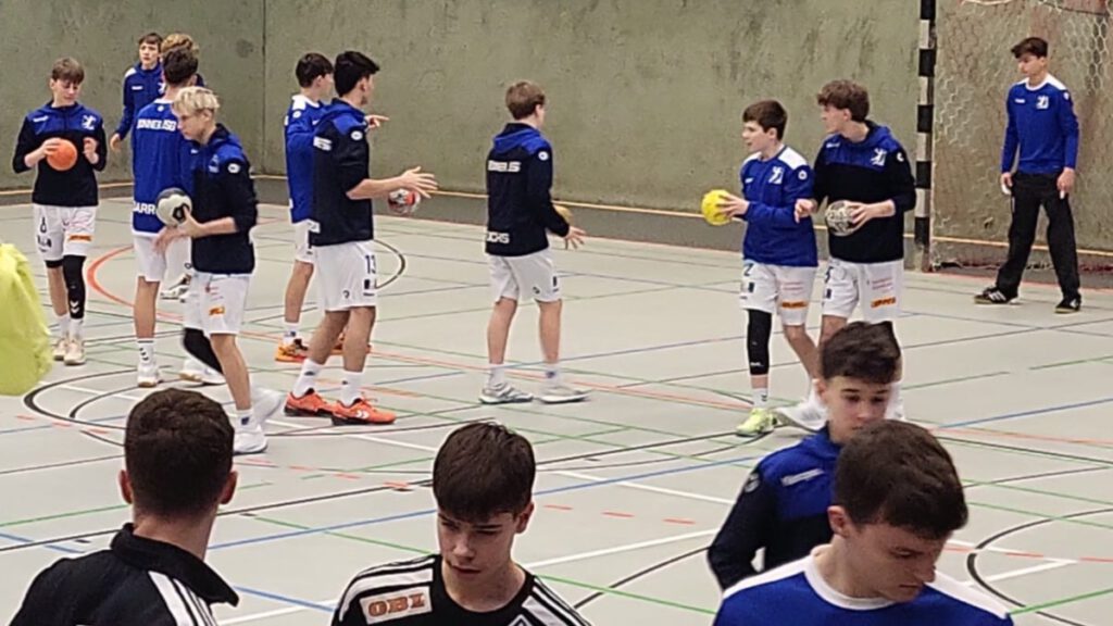 Der Wecker klingelte um 7:10 Uhr am letzten Tag. Durch den guten ersten Tag hatte man sich eine ansprechende Ausgangslage für die Zwischenrunde gegen die Akademieteams aus Jena und Dormagen geschaffen. Zunächst ging es aber erstmal ans Aufräumen des Klassenraums. Nach einem ausgiebigen Frühstück ging es zum Spielort nach Halingen. Vor dem Spiel gegen die HBV Jena 90 betrachtete das Trainerteam gemeinsam mit den Spielen die eigenen Stärken, besprach mit Hilfe von ein paar Videosequenzen Potentiale in der Abwehr – und im Angriff, an welchen man arbeiten wollte. Im Spiel gegen Jena traf man dann auf eine physisch überlegene Mannschaft, welcher man durch die gesetzten Ziele in der Abwehr stark Paroli bot und sich nur selten überlaufen ließ. Im Angriff gab es sehr abwechslungsreiche Torarten zu bestaunen. So trauten sich die Spieler zu Sprungwürfen aus der Distanz – oder Schlag – und Hüftwürfen eng am Abwehrspieler. Jedoch kam es beim Weiterspielen zu einigen Ballverlusten, sodass man sich am Ende seher knapp mit 14:16 geschlagen geben musste.