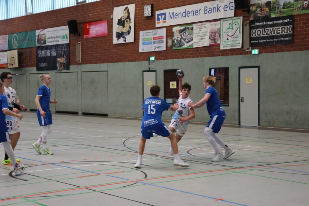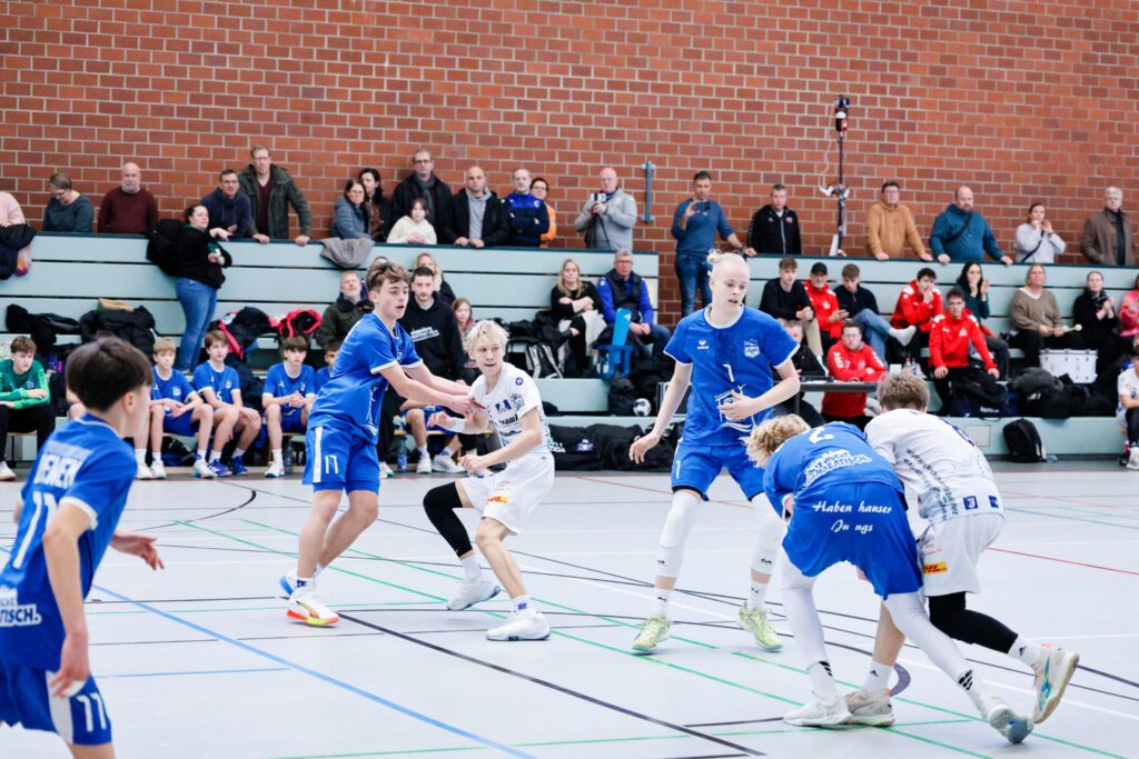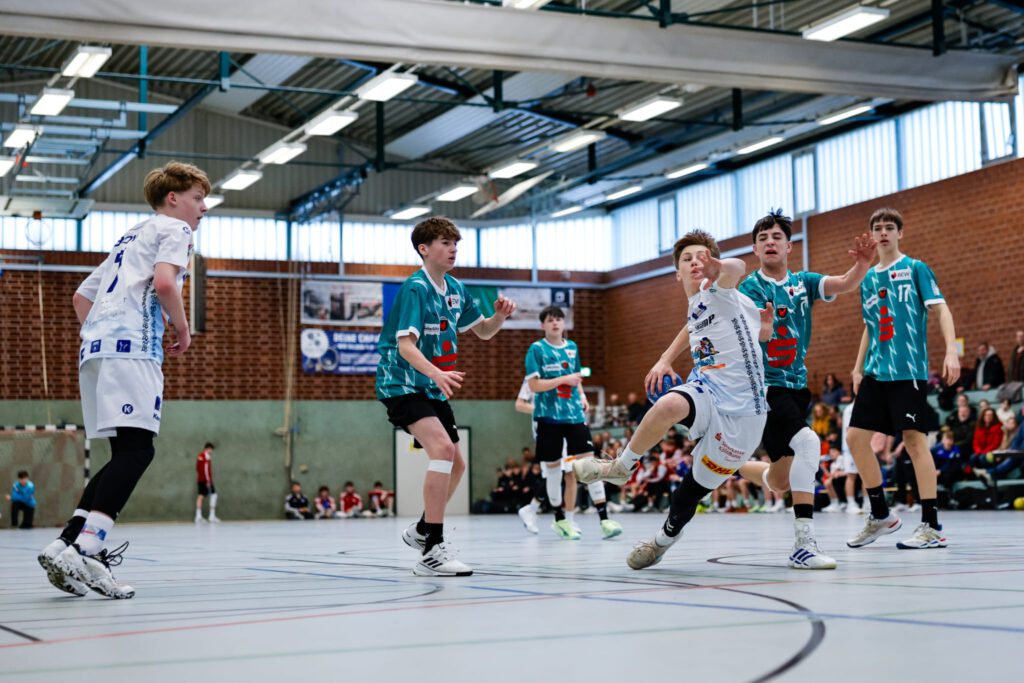 Im ersten Spiel wartete mit HTS/BW96 Handball eine Hamburger Mannschaft auf uns, welche über eine gute Physis und zwei gute Linkshänder verfügte und in der laufenden Saison eine sehr gute Rolle in der Regionalliga Schleswig Holsteins (+Hamburg) spielten. Wir kamen durch eine hohe Zweikampfbereitschaft und dem Mut in richtigen Momenten in der Abwehr in Helfersituationen zu gehen, gut ins Spiel, gewannen einige Bälle und nutzten vorne die Tiefe der Nahtstellen, sodass wir aus 1gg1 Situationen mit Paul, Michel und Benni viele Tore erzielten. Dieses Spiel ging 17:12 für uns aus und gab den Spielern eine Menge Selbstvertrauen.