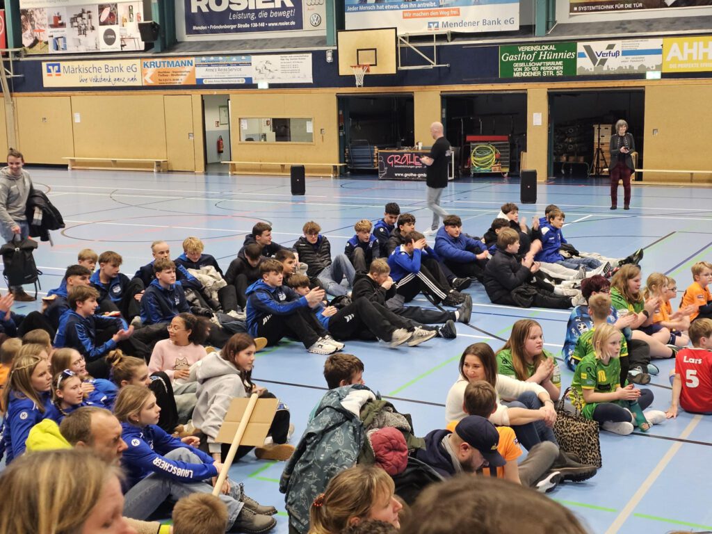 Dort versammelte das Trainerteam Sven Borgs und Simon Santen die Mannschaft schon am Freitagnachmittag zur Eröffnungsveranstaltung, einem Inklusionsturnier bei dem auch Akrobaten sowie andere Künstler ihr Können zeigten. Ein toller Start in den diesjährigen Rozier-Sauerlandcup 2026!