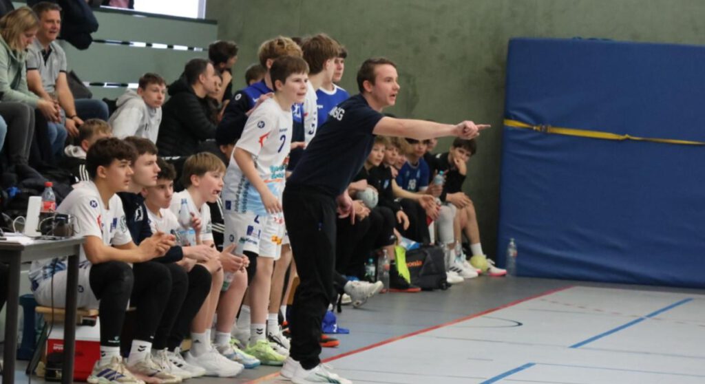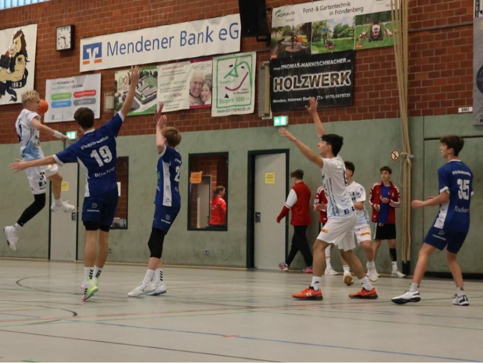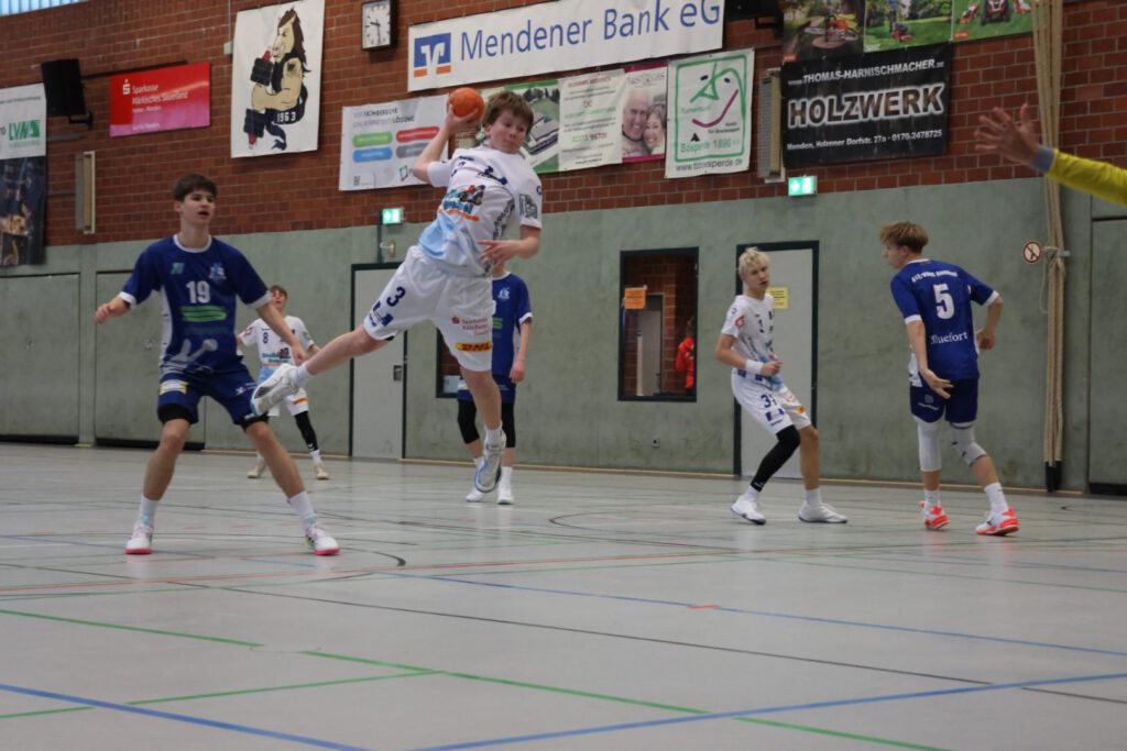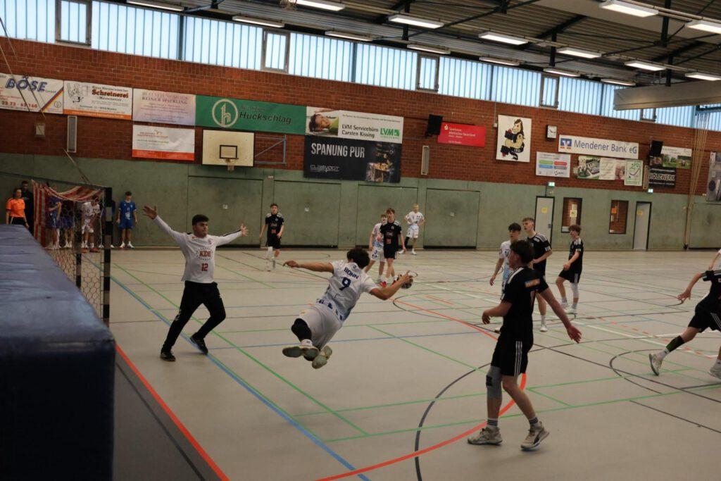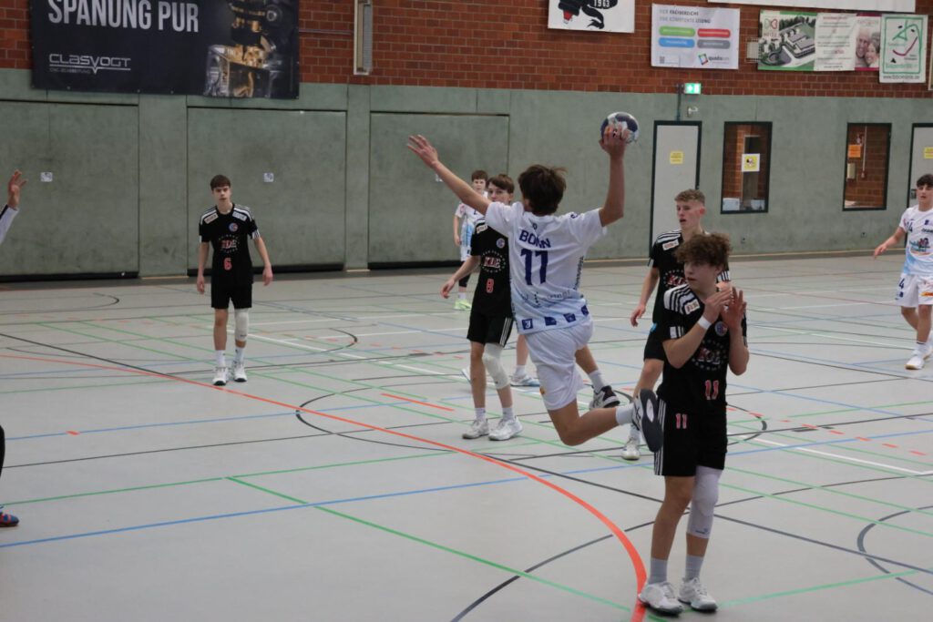 Dieses Spiel startete zäher und mit einigen technischen Fehlern auf unserer Seite, sodass wir zwischenzeitlich mit 6 Toren in Rückstand lagen. Mit der Einwechslung von neuen Spielern auf zum Teil ungewohnten Positionen, wie z.B. Paul (auf Außen), Ruben (am Kreis), oder der Impulse in der Spielsteuerung durch Ole und gute Paraden von Remi, kamen wir so durch großen Kampf wieder auf ein Tor heran. Am Ende entschieden dieses Spiel jedoch Kleinigkeiten, wie z.B. individuelle technische Fehler, sodass wir uns knapp mit 13-16 geschlagen geben mussten.